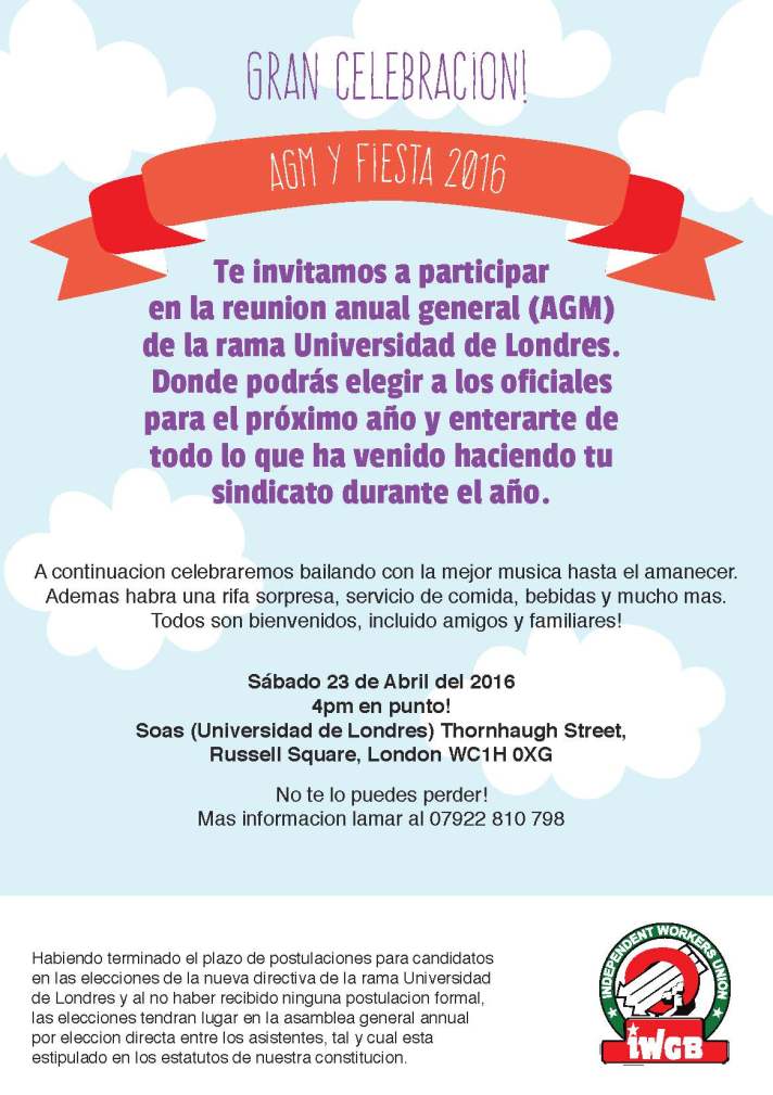 Te invitamos a participar en la reunion anual general (AGM) de la rama Universidad de Londres.