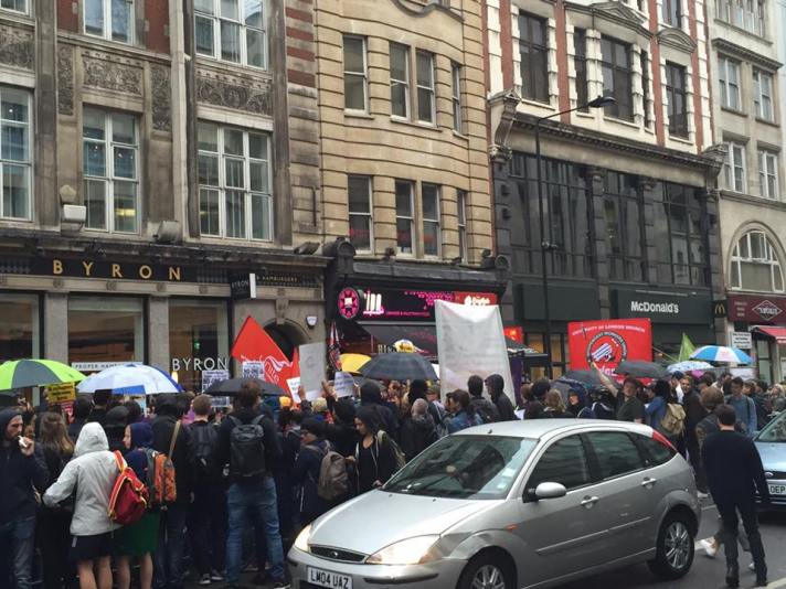 Activistas de la campaña 3Cosas y del sindicato IWGB mostrando solidaridad con los trabajadores deportados de los restaurantes Byron y protestando en contra de sus practicas despiadadas!