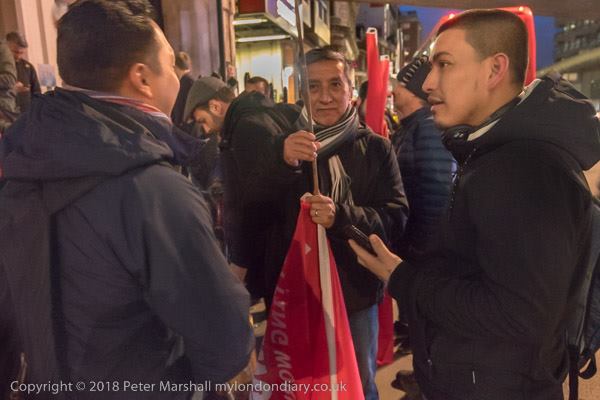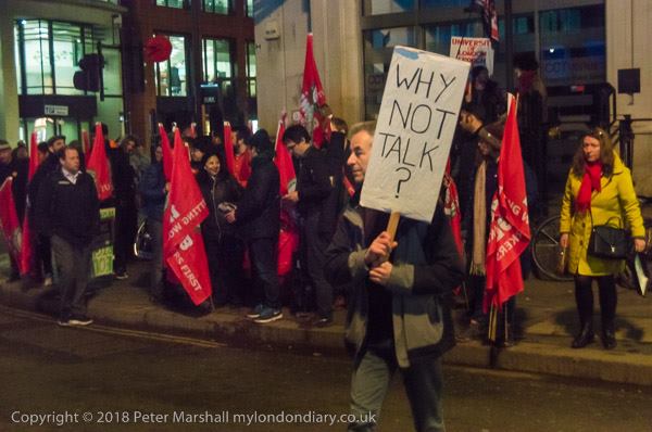 The noisy protest on 6 March came as Sir Adrian waited to welcome his guests at the Brewery near London’s Barbican Centre. Workers and their supporters started their march from Barbican station and at the venue, watched by the police and security staff, made their voices heard while handing out flyers to those attending the dinner.