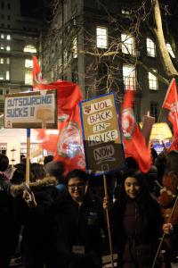 The workers, who are employed by a number of outsourcing companies that have contracts with the University of London’s central administration, are demanding to be made direct employees of the university, and for equal terms and conditions with those that are directly employed.