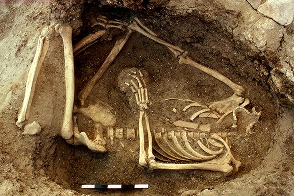 If in the basement of Senate House you should come across the skeleton of a woman that’s about 10,000 years old you might idly wonder if she belonged to a hunter-gatherer group or a farming community that grew grain. Simply examine the skeleton’s back, knees and toes: if they’re deformed it’s because the woman spent many hours rocking back and forth grinding grain, to give her severe RSI.[1]