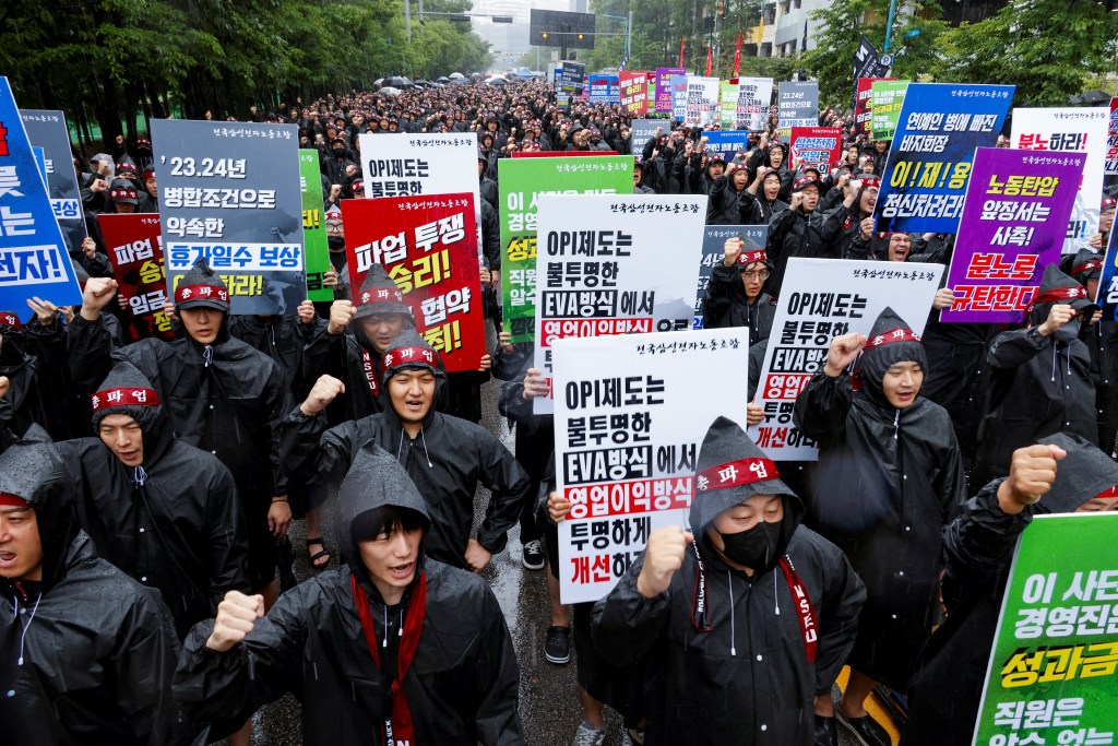 En Corea del Sur, miles de trabajadorxs de Samsung Electronics se han declarado en huelga por primera vez en su historia, exigiendo mejores primas, más vacaciones y un mayor respeto de la dirección hacia su sindicato. Tras convocar inicialmente tres días de huelga, lxs trabajadorxs decidieron pasar a una huelga indefinida ante la negativa de la dirección a negociar adecuadamente con ellos. Además de la huelga, los sindicatos han organizado impresionantes protestas a las que han asistido miles de trabajadorxs de Samsung en huelga.
