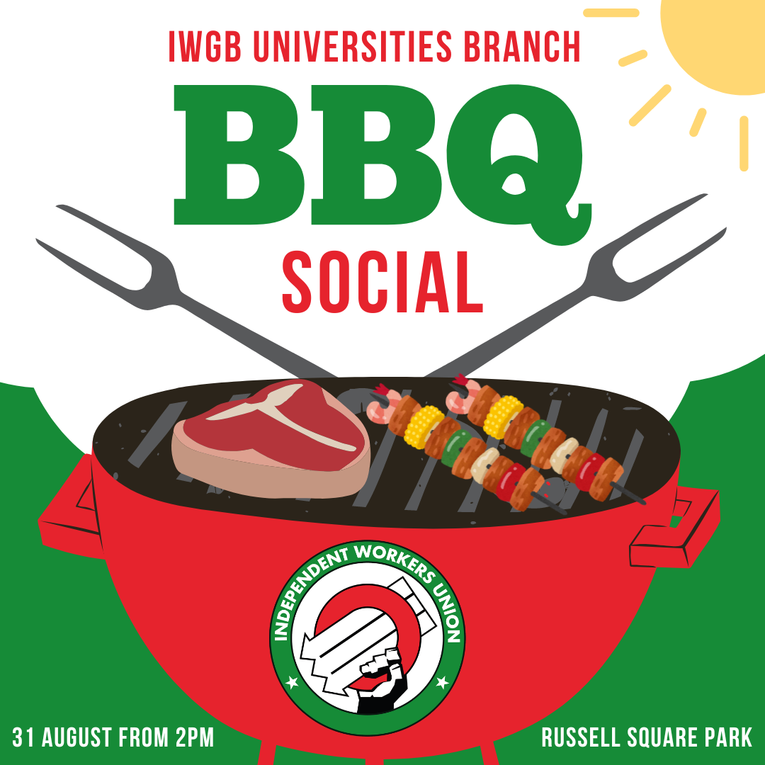 We wish to kindly invite you to our branch members’ BBQ on Saturday 31st August, from 2pm in Russell Square. This will be a great opportunity to socialise with your colleagues working at universities across London, and meet other union members. All union branch members are welcome to attend, as well as their co-workers, friends, and families. Bring along your colleagues and join us to enjoy some delicious food and drinks – hopefully in the sun!