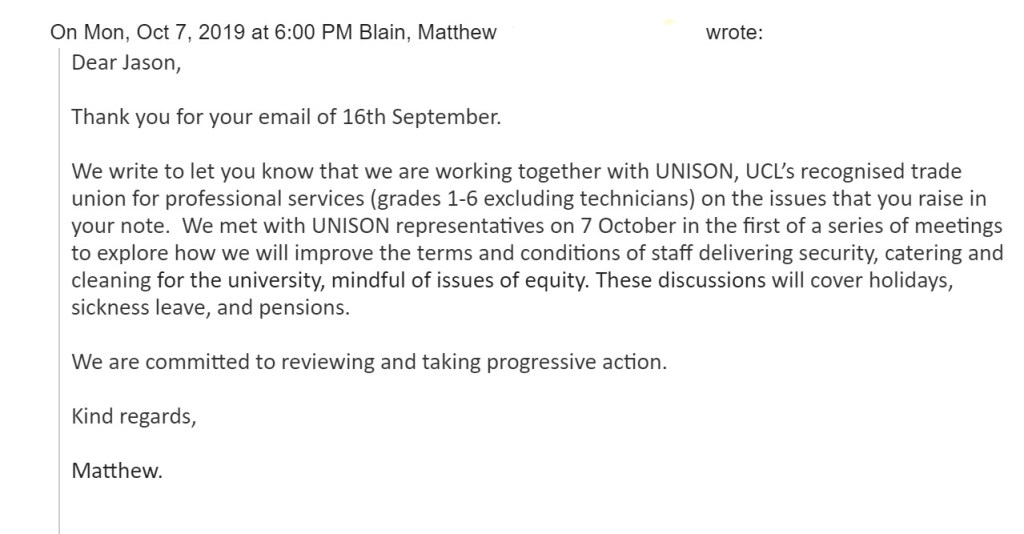 Later this evening we received an insultingly lazy response email from UCL to our letter of demands, which was totally non-committal and offered no guarantees of any progress whatsoever.