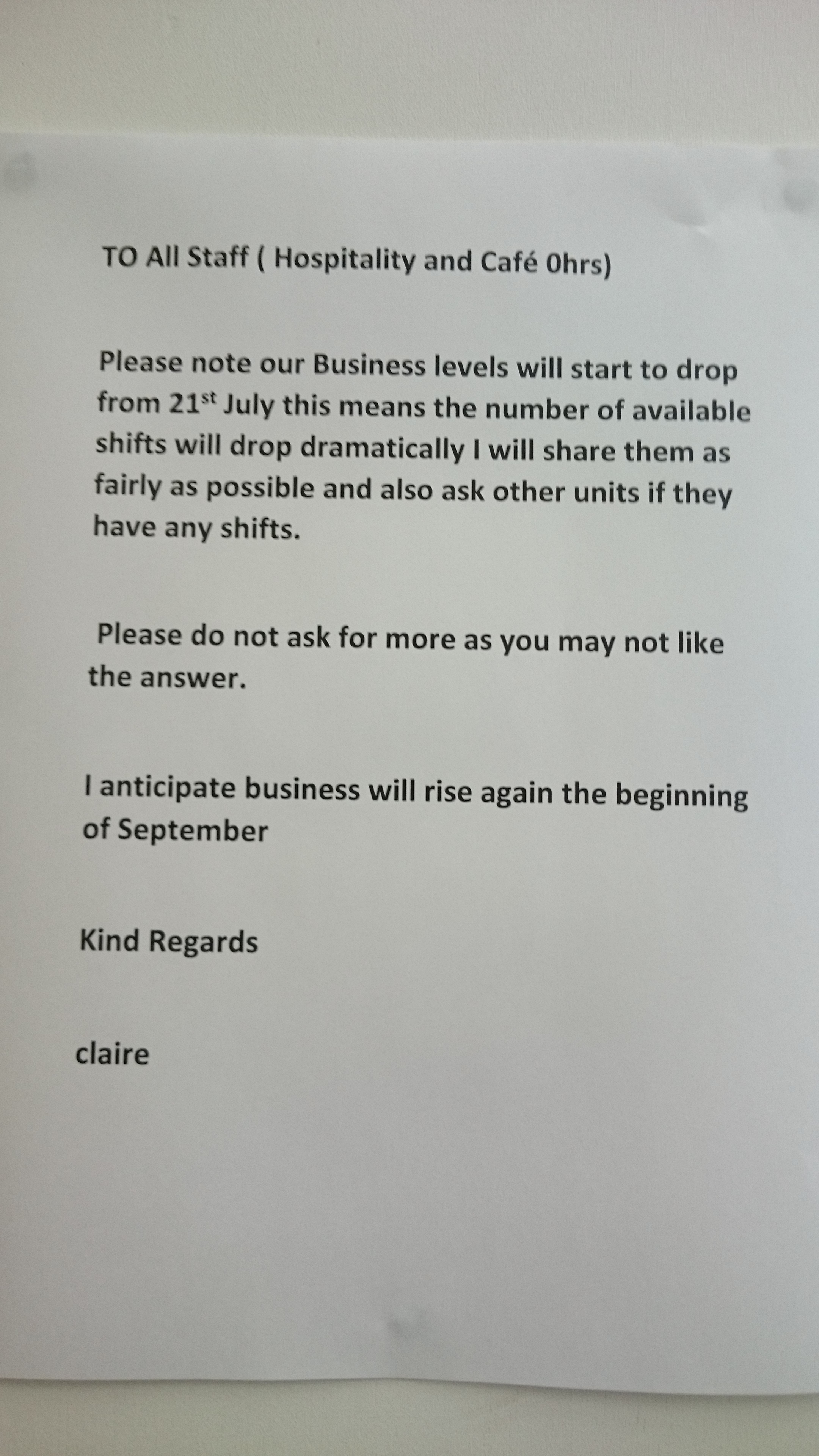 In sum, and on behalf of the Royal College of Music cleaners, I would request that you use your considerable influence with the Royal College of Music management to encourage them to do the right thing make an offer on decent terms and conditions for the people who spend their nights cleaning the College.