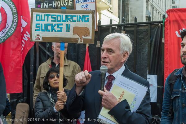 Shadow Chancellor John McDonnell speaking at outsourced workers strike at Senate House